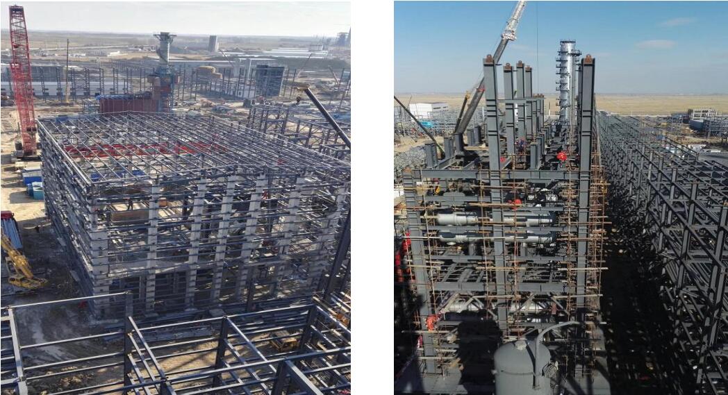 技術(shù)亮點(diǎn):本工程為生產(chǎn)航煤裝置鋼框架,連接節(jié)點(diǎn)復(fù)雜,要求精度高,所有構(gòu)件均為工廠預(yù)制,現(xiàn)場(chǎng)栓接。