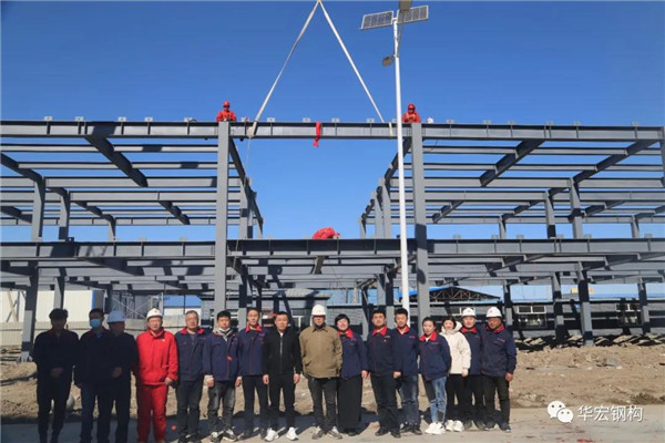 2021年4月3日,8點(diǎn)58分,萬(wàn)里晴空,施工現(xiàn)場(chǎng)鞭炮齊鳴、掌聲雷動(dòng),在華宏人共同見(jiàn)證下,寒地裝配式鋼結(jié)構(gòu)建筑—員工公寓主梁吊裝成功,標(biāo)志著工程鋼結(jié)構(gòu)主體順利完成,這也是工程項(xiàng)目建設(shè)開(kāi)工以來(lái)取得的階段性成果。